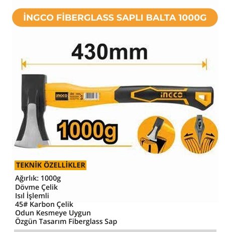 “İNGCO Fiberglass Saplı Balta 1000 Gr.” için yorum yapan ilk kişi siz olun
