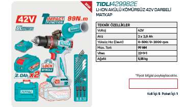 total LI-ION AKÜLÜ KÖMÜRSÜZ 42V DARBELİ tıdlı429982e
